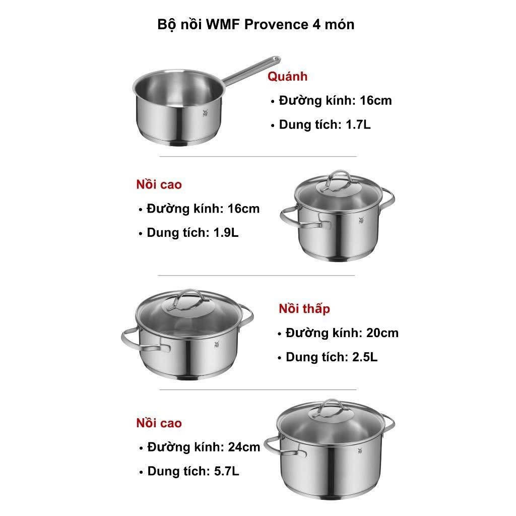 Mô tả sản phẩm, review đánh giá Bộ nồi WMF Provence Plus 4 món