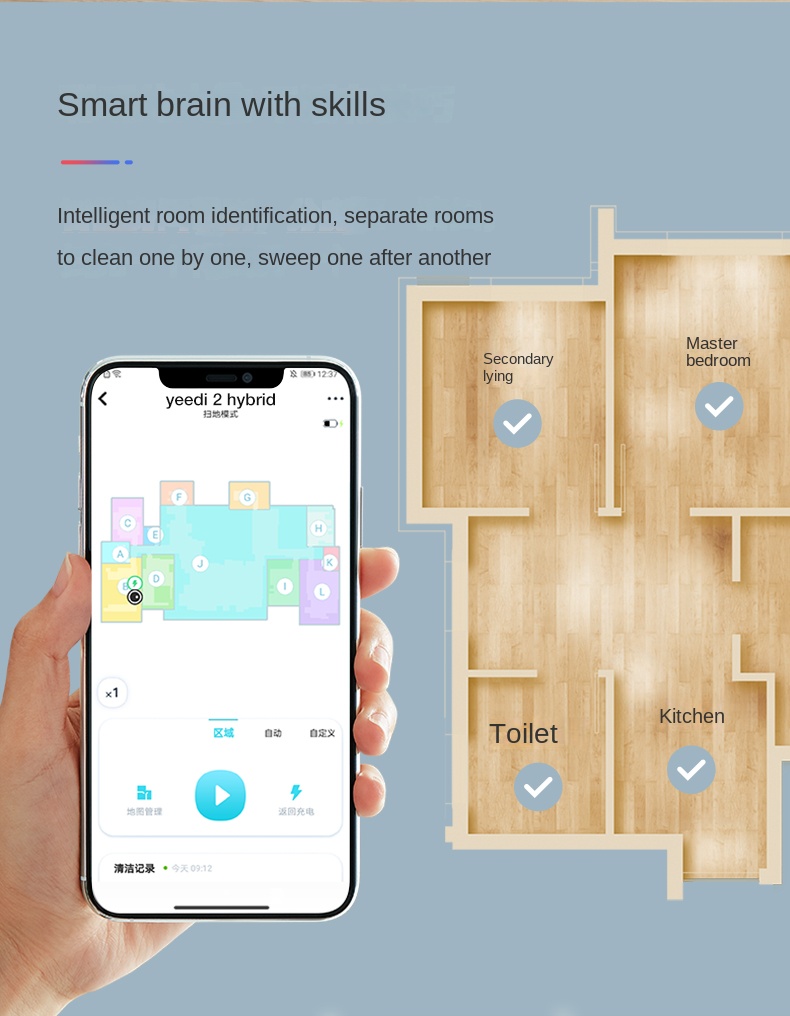- Tích hợp rada Laze quét lưu bản đồ phòng, chia nhà thành nhiều khu vực hợp lý để dọn