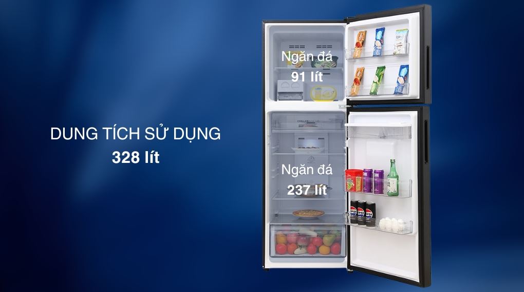 Với tổng dung tích 328 lít, chiếc tủ này phù hợp với gia đình từ 3–5 thành viên, có thể dự trữ thực phẩm thoải mái trong nhiều ngày: